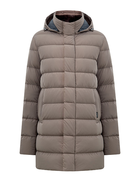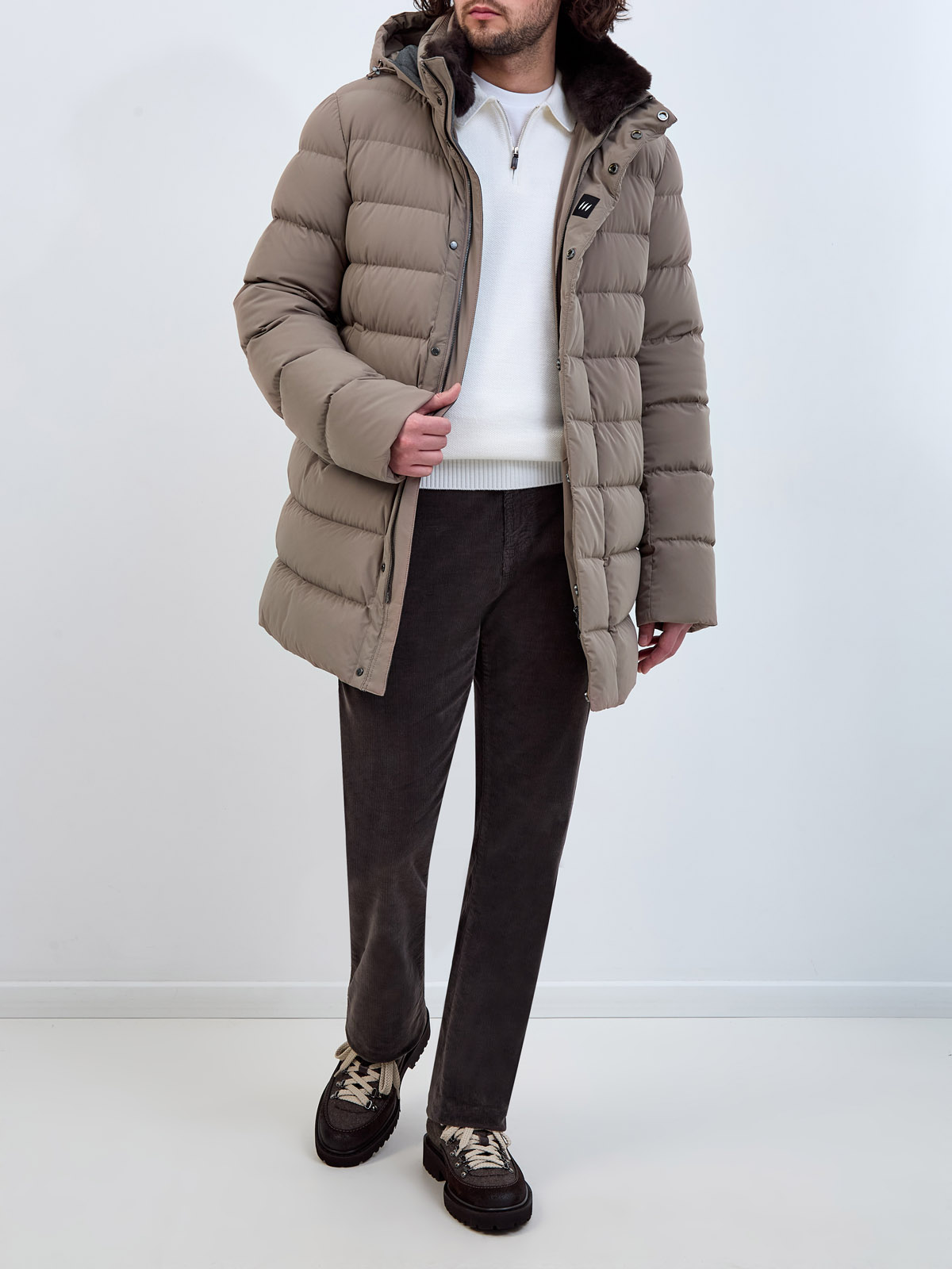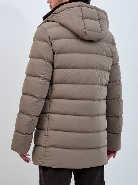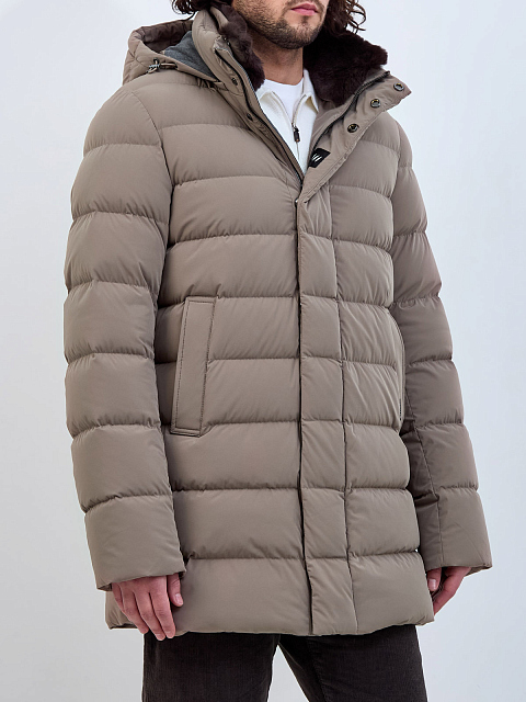 Стеганый пуховик со съемным капюшоном и мехом кролика