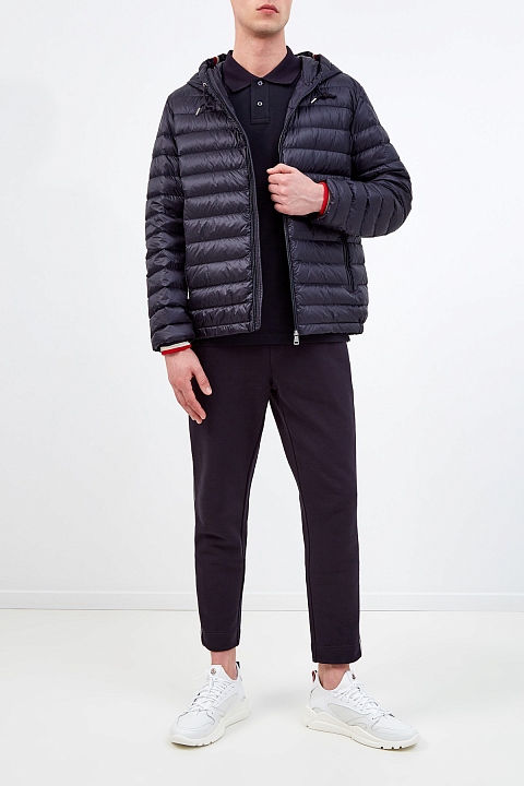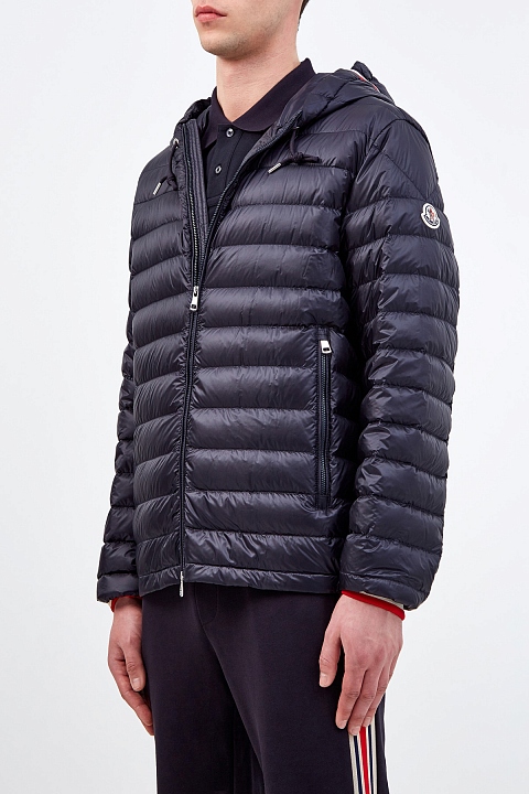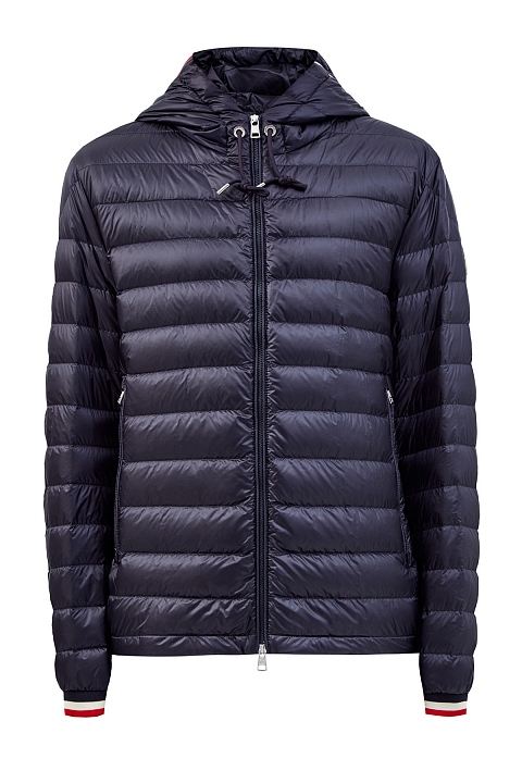 Пуховик Giroux от Moncler выполнен из глянцевого нейлона Longue Saison. Тонкий слой утеплителя из пуха, введенного методом прямой задувки, сохраняет комфортную температуру и остается актуальным как в межсезонье, так и в непогоду в теплый сезон. Трехцветная отделка в полоску на манжетах и капюшоне подчеркивает динамичную эстетику бренда. Детали: два кармана, застежка-молния.