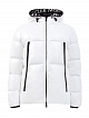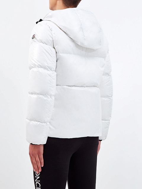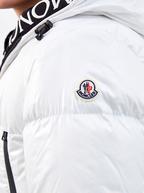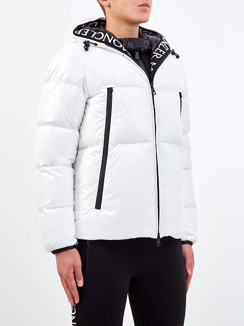 Функциональный мужской пуховик Montcla в белом цвете от Moncler. Модель создана из прочного нейлона Rainwear с горизонтальным стеганым эффектом и дополнена утеплителем из пуха и пера. Динамичный штрих изделию придает внутренняя отделка лентой грогрен с контрастным логотипом бренда. Вертикальные прорезные макси-карманы на передней планке завершают дизайн. Детали: застежка на молнию с двойными пуллерами, эластичные манжеты, фирменный патч из силикона на рукаве, глубокий капюшон.