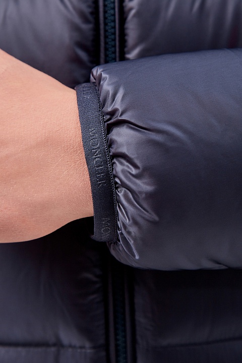 Стильный пуховик Willm от Moncler выполнен из невесомого нейлона с матовой непромокаемой поверхностью. Фирменная эстетика выражена за счет трехцветной вставки laqué — одной из самых узнаваемых тканей бренда. Съемный капюшон защищает от ветра, а эластичная отделка кромок обеспечивает точную и комфортную посадку по фигуре, не позволяя холодному воздуху проникать внутрь. Детали: прорезные карманы, логотип из фетра, застежка-молния. Длина по спинке 68 см.
