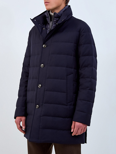 Пуховик из плотной шерсти мериноса со съемной нейлоновой вставкой