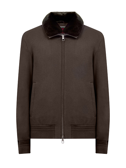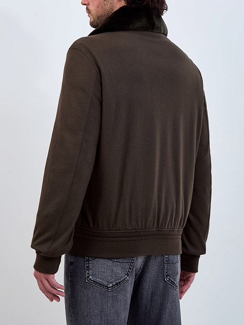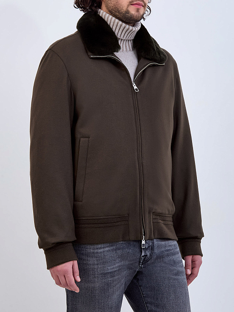 Пуховый бомбер из шерстяной фланели с мехом кролика