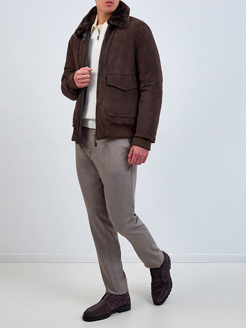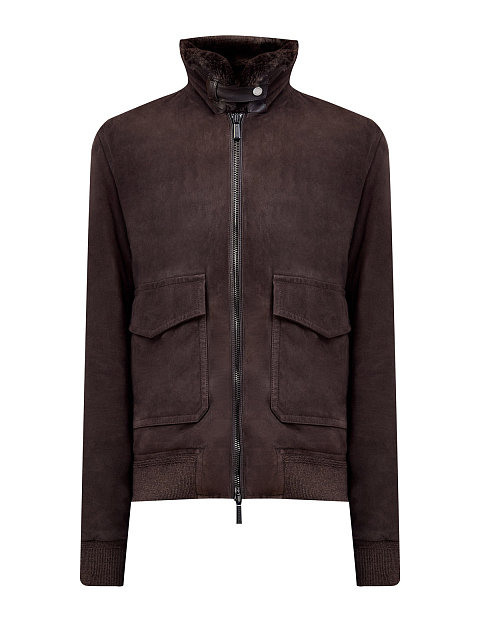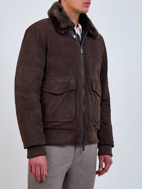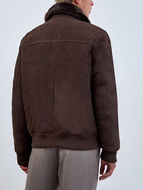 Замшевый бомбер с пуховым утеплителем и мехом ягненка