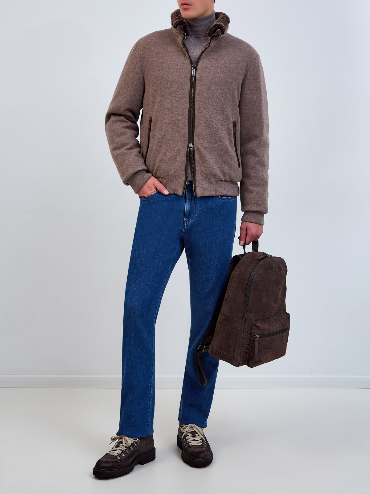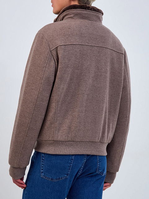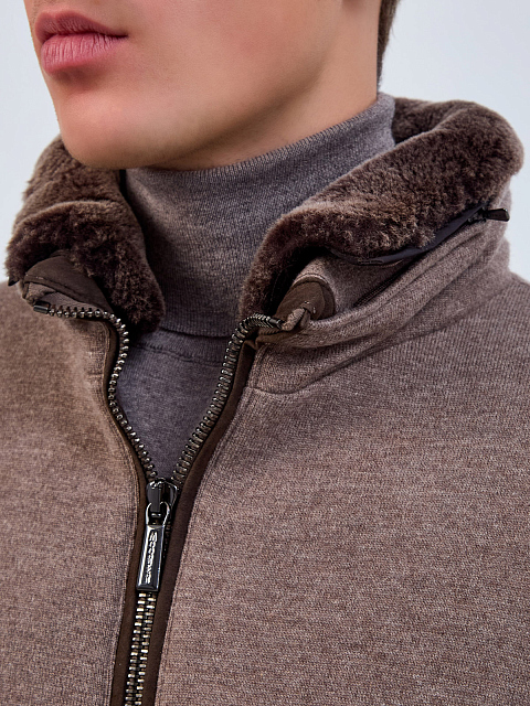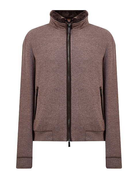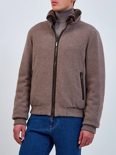 Пуховый бомбер из шерсти и кашемира с меховой отделкой