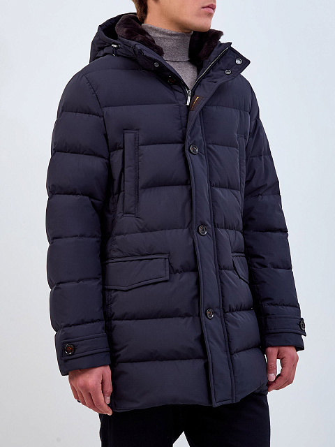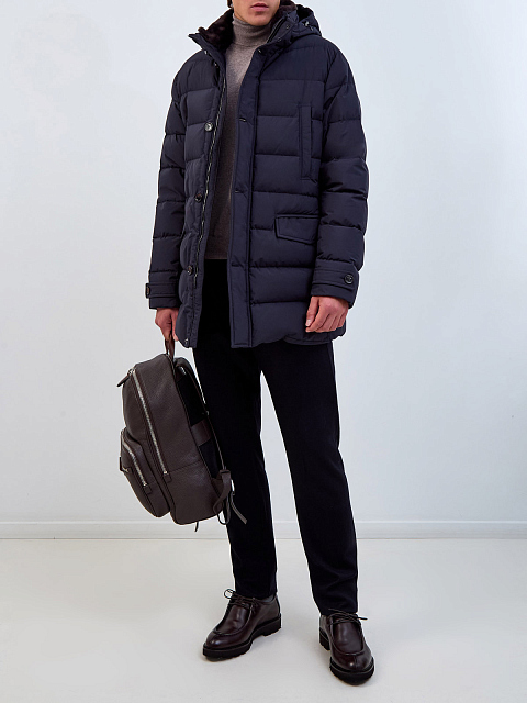 Классический мужской пуховик Saturno от Moorer создан из стеганой технической ткани с водоотталкивающей обработкой Acqua Proof. Съемная меховая вставка на вороте и отстегивающийся регулируемый капюшон на молнии дополнительно защищают от снега и ветра. Наполнитель из гусиного пуха и пера обеспечивает максимальный комфорт в условиях низких температур. За счет универсальной длины изделие органично смотрится в том числе с блейзерами и пиджаками. Детали: двойная застежка на молнию и кнопки, прорезные карманы с бортами.