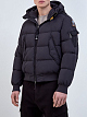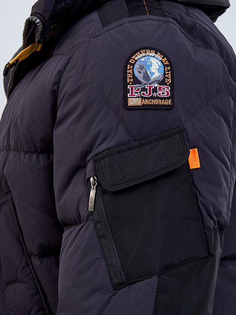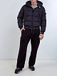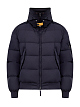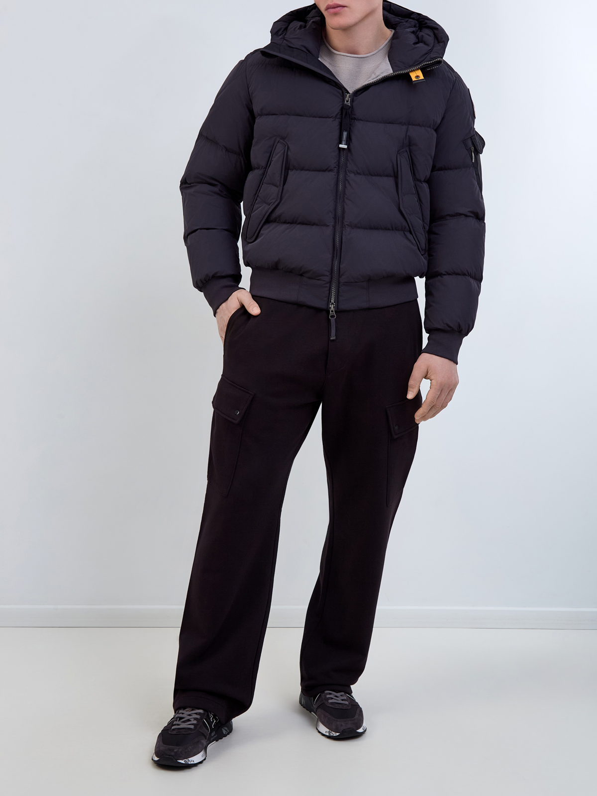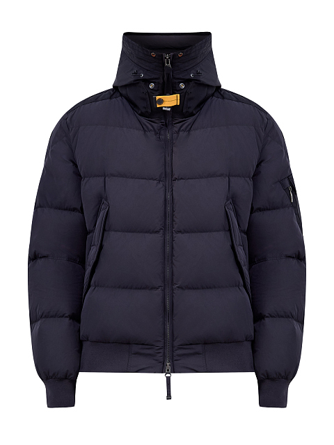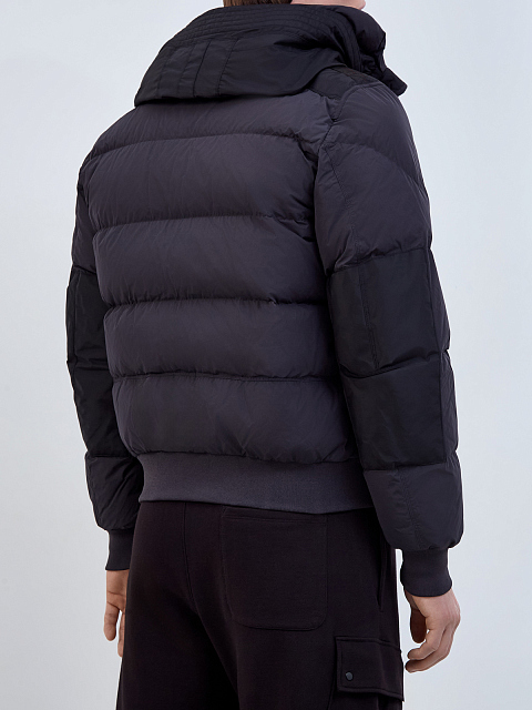 Стеганый пуховик-бомбер с регулируемым капюшоном и нашивкой
