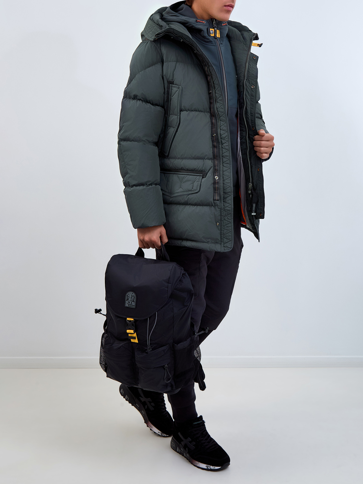 Пуховик из стеганого нейлона Micro Reps с разрезами на молниях