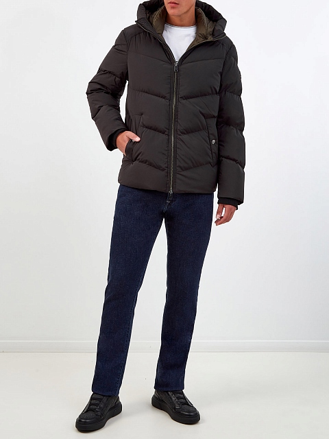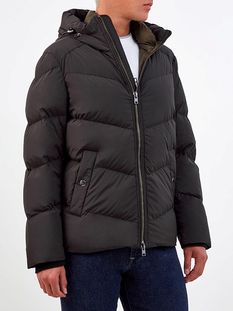 Стеганый пуховик из водоотталкивающего нейлона с капюшоном