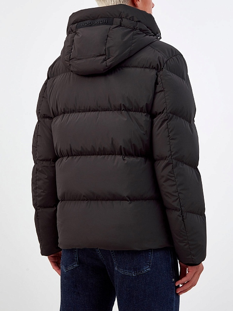 Теплый мужской пуховик от Woolrich станет универсальным выбором в зимнее время года. Модель с объемной горизонтальной стежкой выполнена из водоотталкивающего и ветрозащитного нейлона, набивка из утиного пуха и пера сохраняет максимальный комфорт в условиях низких температур. Урбанистический дизайн дополнен двойной застежкой на молнию, прорезными карманами на молниях, трикотажными манжетами и капюшоном с логотипом.