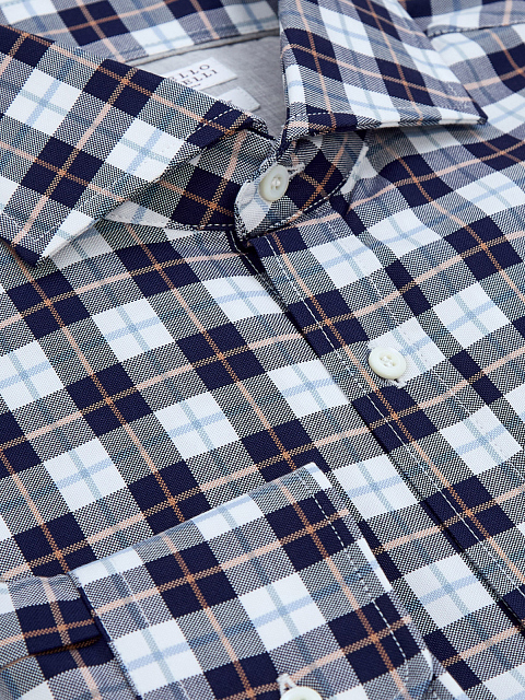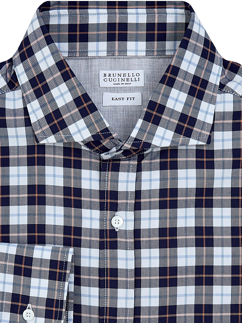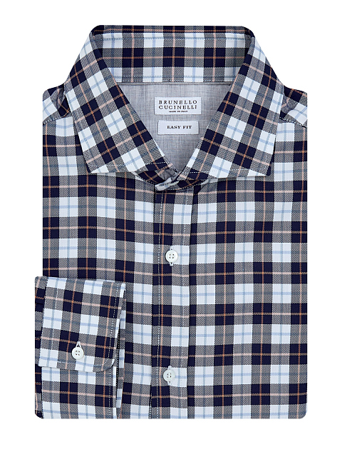 Мужская рубашка от Brunello Cucinelli выполнена из легкого хлопкового пике. Полностью натуральный состав делает повседневные образы максимально комфортными. Принт в клетку, французский воротник и силуэт Easy Fit придает образу непринужденное настроение. Матовые пуговицы подчеркивают присущее Модному дому внимание к деталям. Сделано в Италии.