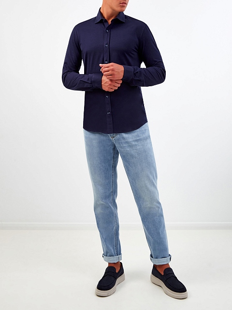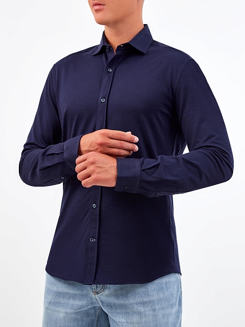 Однотонная рубашка приталенного кроя из мягкого хлопка