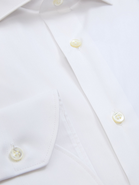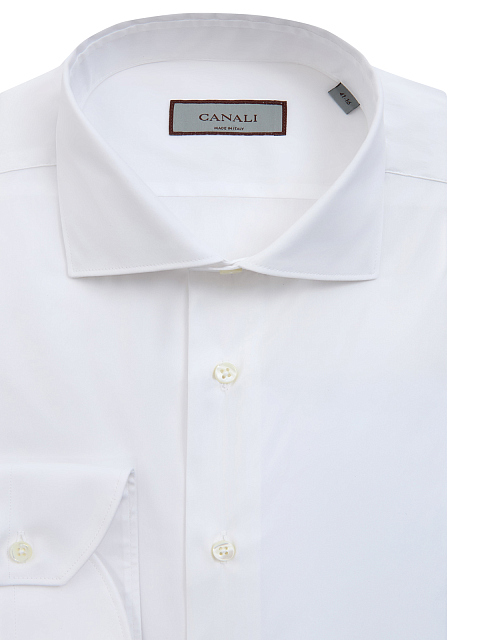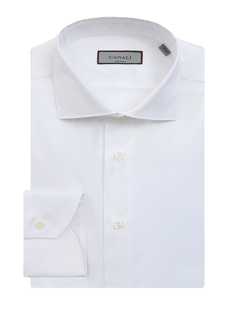 Однотонная белая рубашка от Canali выполнена из эластичного хлопкового поплина — выверенный состав ткани обеспечивает комфорт в движении. Классический силуэт идеально подходит для создания торжественных, деловых и повседневных образов. Детали: закругленный нижний край, отложной воротник, застежка на пуговицы из перламутра. Сделано в Италии.