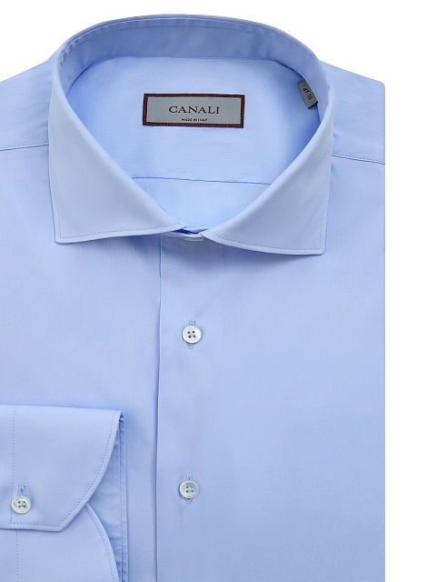 Мужская рубашка из гладкого хлопкового поплина от Canali представлена в универсальном голубом оттенке, выверенный состав ткани обеспечивает комфорт в движении. Классический крой делает модель идеальным решением для создания комфортных аутфитов в рамках делового дресс-кода. Детали: отложной ворот, пуговицы из перламутра, закругленный нижний край. Сделано в Италии.