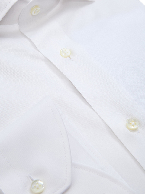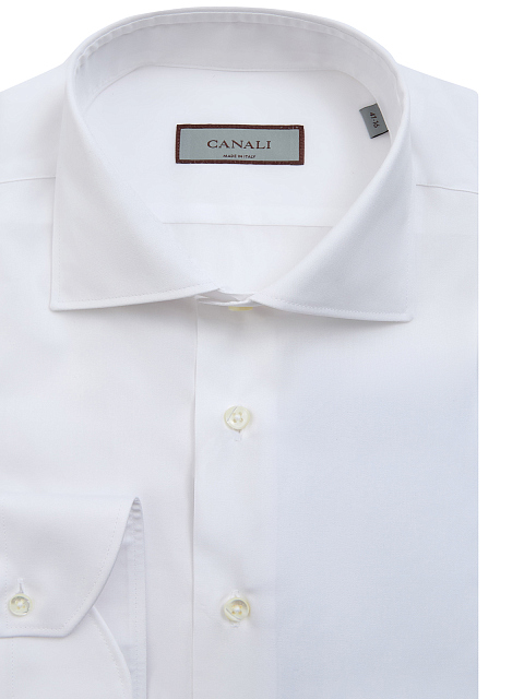 Базовая мужская рубашка от Canali идеально подходит для создания элегантного повседневного или торжественного образа. Изделие выполнено вручную из белоснежного хлопкового поплина. Модель с традиционным итальянским воротником, асимметричными нижними кромками, плотными закругленными манжетами на длинных рукавах и застежкой на ряд пуговиц из перламутра. Сделано в Италии.