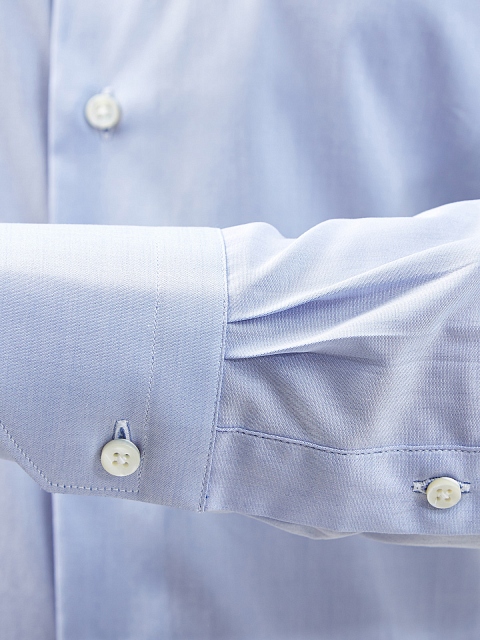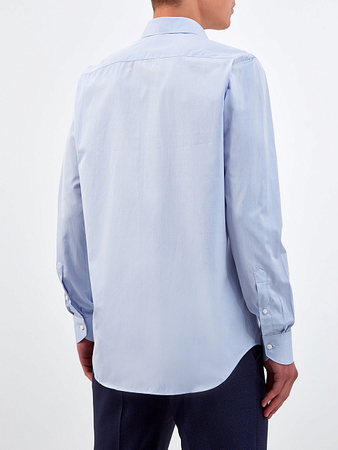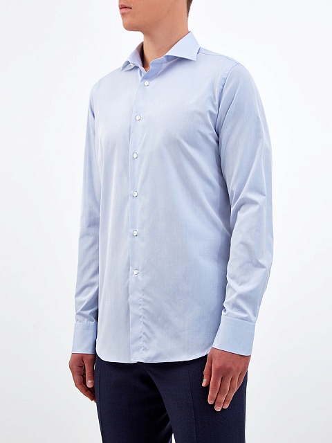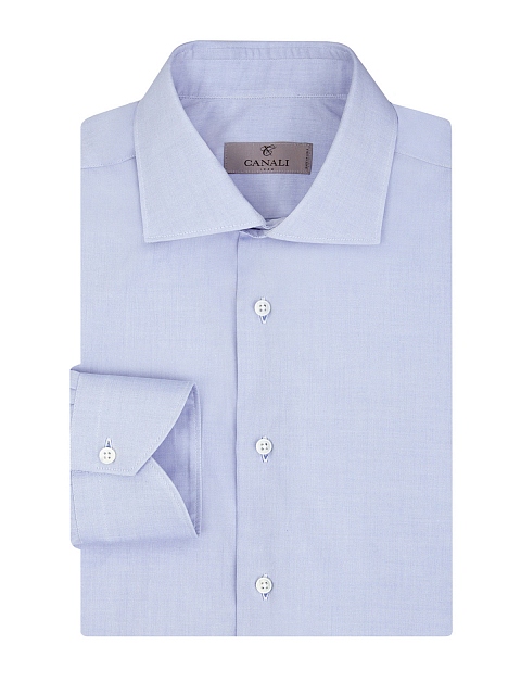 Базовая мужская рубашка от Canali выполнена из гладкой хлопковой ткани. Модель с длинными рукавами дополнена традиционным отложным воротом, застежкой на пуговицы и кокеткой на спинке для посадки по фигуре. Однотонный светло-голубой оттенок станет идеальным дополнением классических и деловых образов. Сделано в Италии.