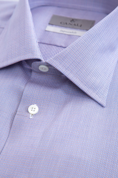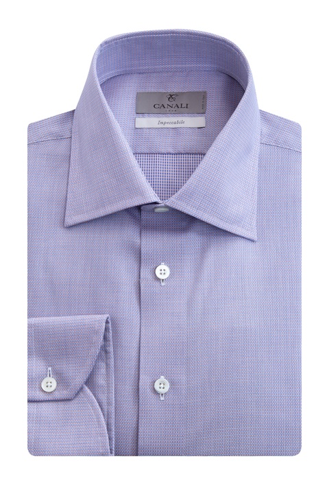 Классическая рубашка из коллекции Impeccabile бренда Canali, которая характеризуется специальной экологичной обработкой ткани, позволяющей отталкивать загрязнения и разглаживать незначительные складки за счет тепла тела. Модель с микроузором сиреневого тона, характеризуется классическим итальянским воротником и длинными рукавами с широкими манжетами на пуговицах. Застежка осуществляется на пуговицы на центральной планке. Сделано в Италии.
