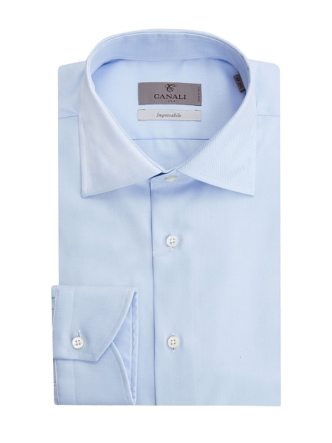 Рубашка из хлопкового твила с диагональным переплетением волокон от Canali. Специальная обработка Impeccabile предотвращает образование складок и появление пятен. Крой Modern Fit делает модель идеальным решением для создания комфортных аутфитов в рамках делового дресс-кода. Детали: отложной ворот, пуговицы из перламутра, закругленный нижний край. Сделано в Италии.