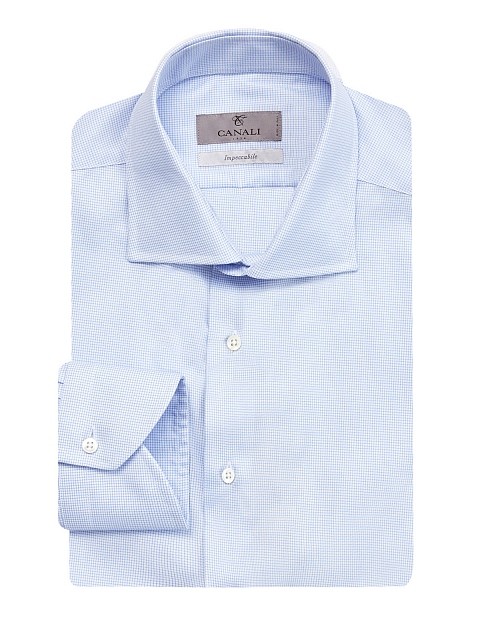 Рубашка в клетку виши из гладкого хлопкового поплина от Canali. Специальная обработка Impeccabile предотвращает образование складок и появление пятен. Крой Modern Fit делает модель идеальным решением для создания комфортных аутфитов в рамках делового дресс-кода. Детали: отложной ворот, пуговицы из перламутра, закругленный нижний край. Сделано в Италии.
