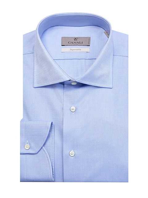 Элегантная мужская рубашка от Canali выполнена из хлопкового поплина в небесно-голубом оттенке. Ткань с фирменной обработкой Impeccabile дополнена жаккардовым узором в тон, который актуален для повседневных и деловых образов. Детали: комфортный крой с отложным воротником, рукавами на манжетах и застежкой на пуговицы из перламутра. Сделано в Италии.