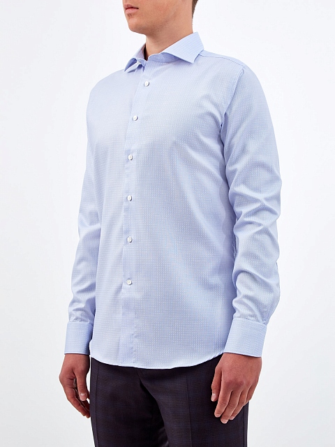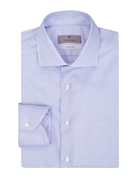 Лаконичная мужская рубашка от Canali выполнена из гладкого хлопка. Специальная обработка Impeccabile предотвращает образование складок и появление пятен. Жаккардовый принт в сдержанной цветовой гамме делает модель идеальной для создания комфортных аутфитов в рамках делового дресс-кода. Детали: пуговицы из перламутра, закругленный нижний край. Сделано в Италии.