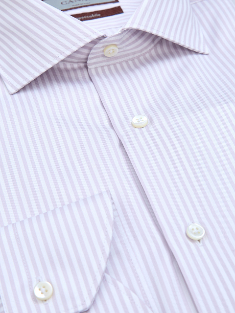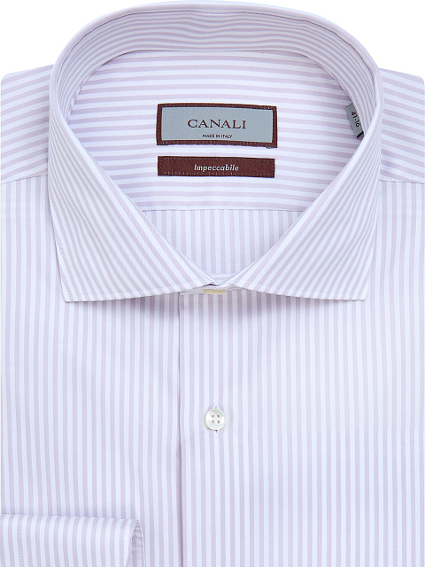 Рубашка из гладкого хлопкового твила с принтом в лаконичную вертикальную полоску от Canali. Полностью натуральная ткань обеспечивает максимальный комфорт и сохраняет форму благодаря специальной обработке Impeccabile. Классический крой делает модель идеальным решением для создания комфортных аутфитов в рамках дресс-кода. Детали: отложной ворот, пуговицы из перламутра. Сделано в Италии.
