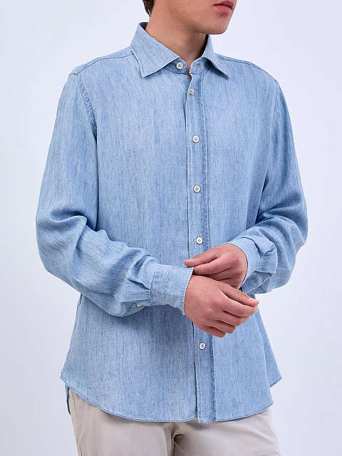 Рубашка из лиоцелла и льна Platinum с окрашиванием под деним