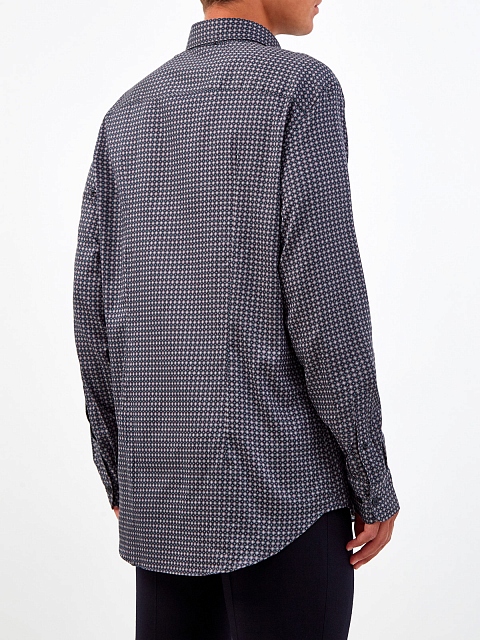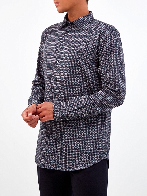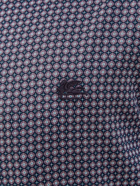 Стильная мужская рубашка с длинным рукавом от Etro выполнена из комфортного хлопкового поплина в синей гамме. Геометрический микро-принт вносит интересный акцент в повседневный образ. Модель с классическим отложным воротником и застежкой на ряд пуговиц дополнена закругленными нижними кромками и вышитым логотипом бренда. Сделано в Италии.