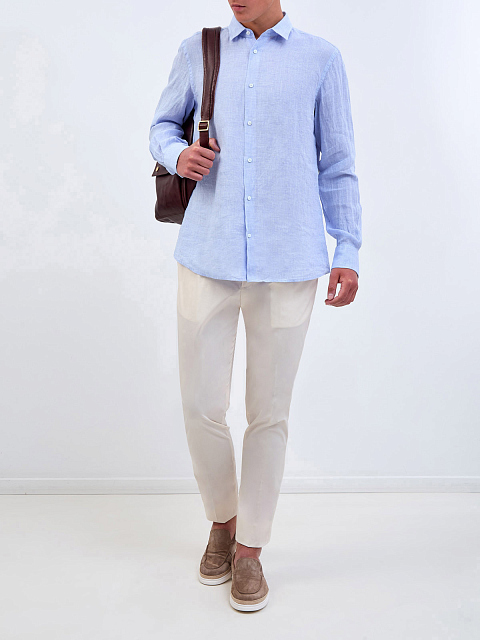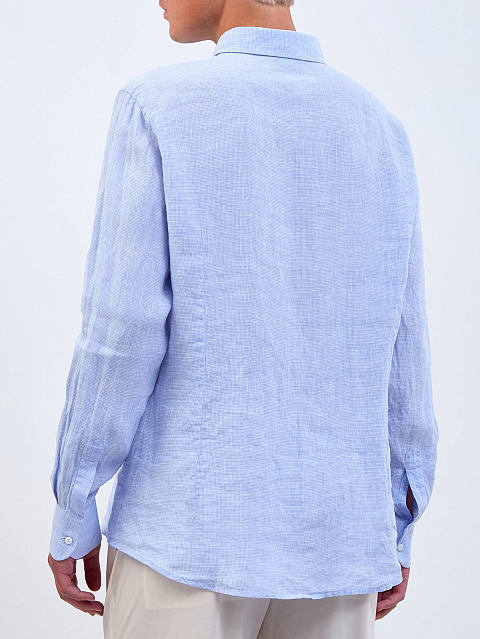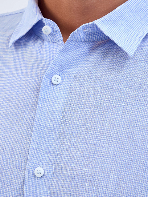 Свободная рубашка из льняной ткани с микро-узором в клетку