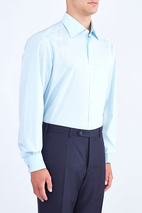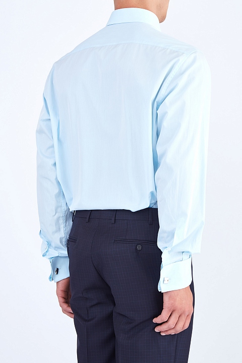 Однотонная мужская сорочка Urbino Stefano Ricci изготовлена из легкого египетского хлопка. Модель без декоративных элементов и карманов. Отложной воротник на стойке, манжеты и передняя планка застегиваются на пуговицы в виде фирменного восьмиугольника. Произведено в Италии.