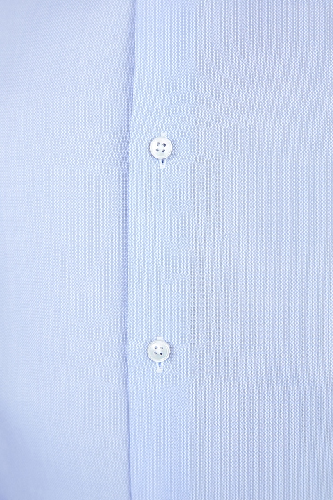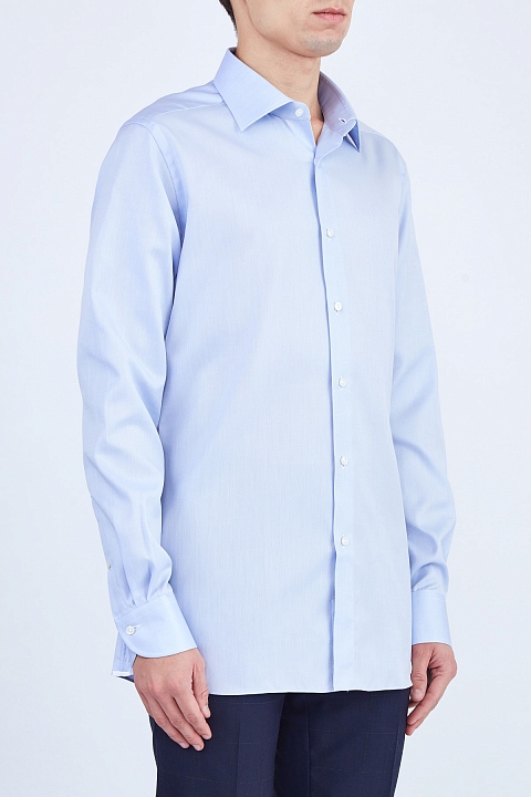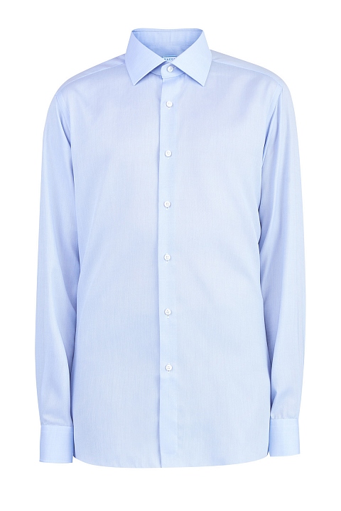 Мужская рубашка Travel Shirt от Xacus кроя tailor fit, созданная для тех, кому необходимо сохранять деловой дресс код даже в поездках. Модель сшита из уникальной хлопковой ткани Wrinkle Free, которая под воздействием тепла тела и влаги разглаживает складки. Поверхность изделия мягкая и гладкая, окрашенная в светло-голубой цвет. Детали: Скругленные манжеты, отложной ворот cutaway, передняя планка на пуговицах. Сделано в Италии.