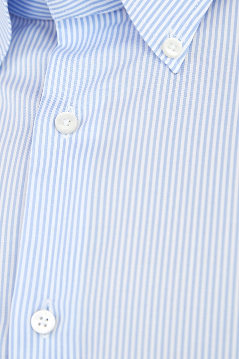 Мужская рубашка Travel Shirt от Xacus кроя tailor fit разработана для тех, кому необходимо сохранять деловой дресс-код даже в поездках. Изделие выполнено из технологичного хлопка Wrinkle Free, который под воздействием тепла тела разглаживает складки. Детали: принт в вертикальную полоску, закругленные манжеты, отложной воротник button-down, застежка на пуговицы из перламутра. Сделано в Италии.