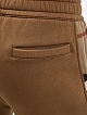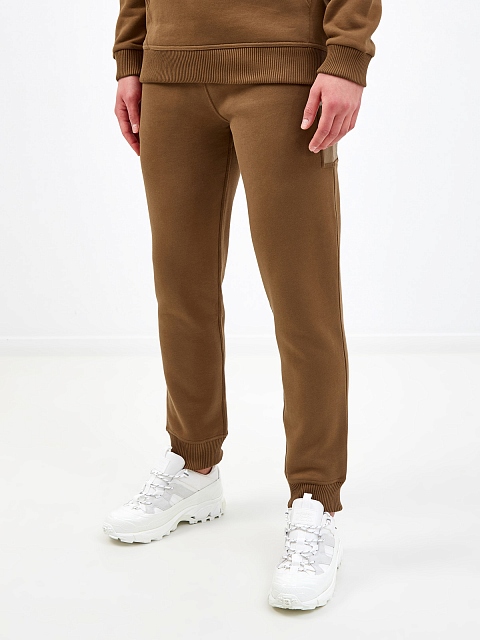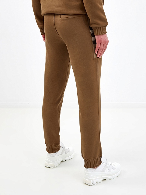 Спортивные брюки-джоггеры от Burberry в коричневом оттенке. Для создания модели был выбран плотный хлопковый футер — натуральная ткань с мягкой внутренней поверхностью сохраняет комфорт в движении. Отделка боковых планок из фланели в фирменную клетку подчеркивает динамичный стиль изделия. Детали: пояс на кулиске, эластичные манжеты, прорезные карманы, логотип из кожи.