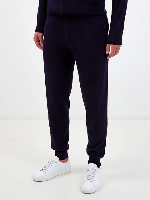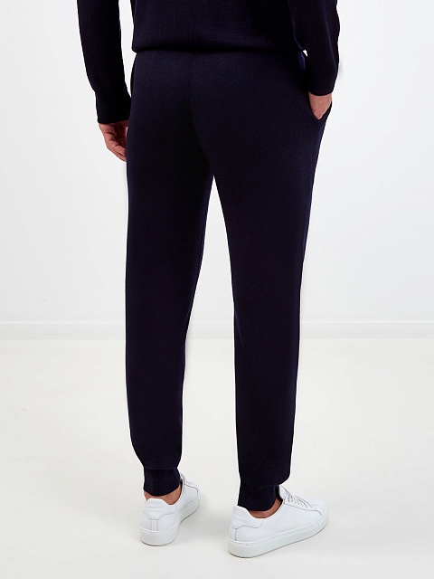 Однотонные мужские брюки-джоггеры от Canali. Для пошива модели была выбрана мягкая шерстяная ткань в глубоком оттенке индиго. Пояс на регулируемой кулиске и эластичные манжеты обеспечивают комфортную посадку и создают расслабленный образ в спортивном стиле. Сделано в Италии.