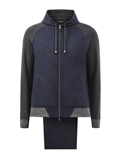 Комбинированный спортивный костюм от Capobianco сочетает натуральные ткани и сдержанную цветовую гамму в стиле colorblock. Толстовка с капюшоном на кулиске и джоггеры с эластичным поясом идеально подходят для путешествий и активного отдыха, отделка кромок из трикотажа обеспечивает комфортную посадку по фигуре. Детали: прорезные карманы, молния с двойным пуллером, брендированная фурнитура. Сделано в Италии.