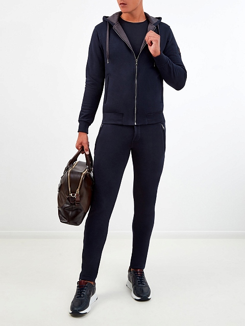 Спортивный костюм из гладкого хлопка с капюшоном на кулиске