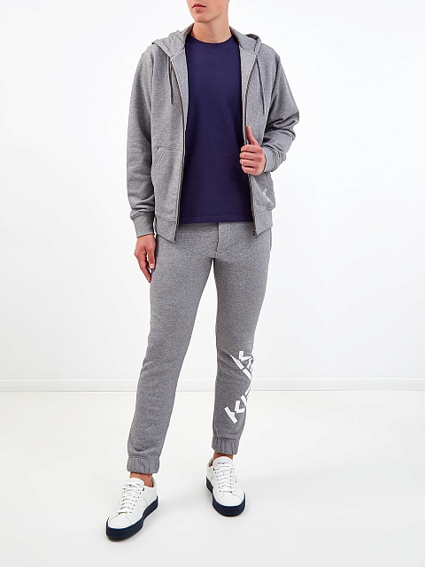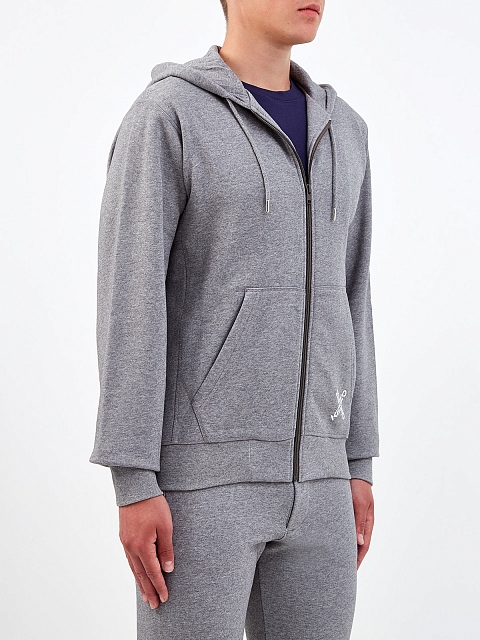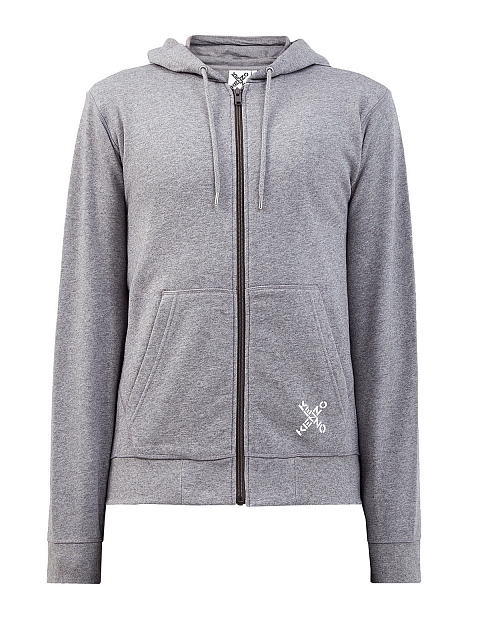Толстовка в спортивном стиле от Kenzo выполнена из плотного хлопка. Модель представлена в базовом сером оттенке и дополнена аппликацией с монограммой бренда. Свободный силуэт обеспечивает максимальный комфорт, а эластичные манжеты и нижний край делают модель идеальным решением для путешествий и повседневных образов. Детали: застежка на молнию, два кармана.