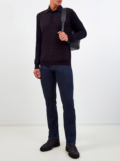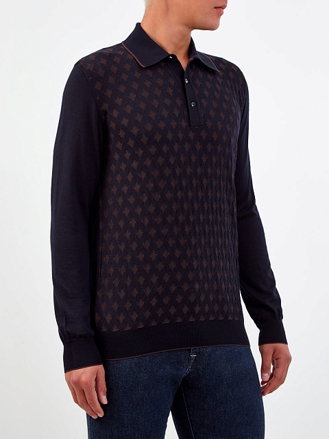 Джемпер-поло из шерсти и шелка с контрастной отделкой