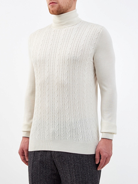 Светлый джемпер из кашемира и шелка с высоким воротом