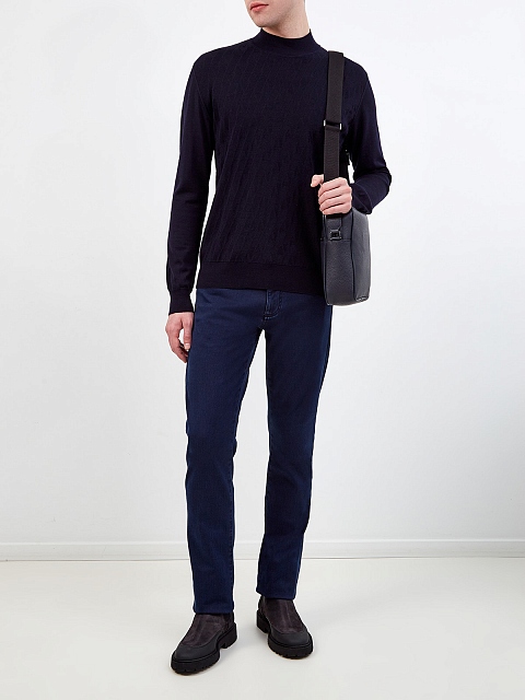 Лаконичный мужской джемпер в глубоком оттенке индиго от Bertolo Cashmere создан из шерсти и шелка. Полностью натуральный состав поддерживает комфортную температуру тела. Классическая модель дополнена фактурным узором в тон на передней планке, эластичная отделка кромок обеспечивает посадку по фигуре. Сделано в Италии.