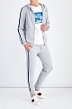 Мужская спортивная толстовка от Bikkembergs выполнена из плотного хлопкового футера меланжево-серого цвета. Особенностью модели стали широкие контрастные лампасы с узором в трехцветную полоску. Детали: глубокий капюшон на кулиске, эластичная окантовка кромок в рубчик, прорезные карманы на молнии по бокам, объемные аппликации Soccer на планках.
