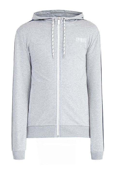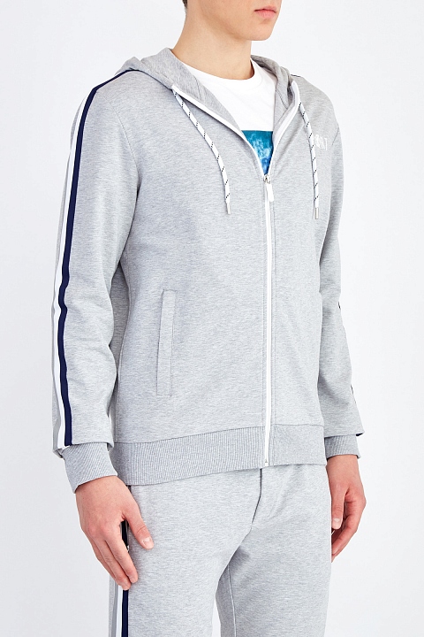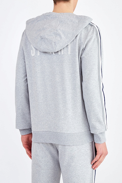 Толстовка из хлопкового футера с трехцветными лампасами и капюшоном
