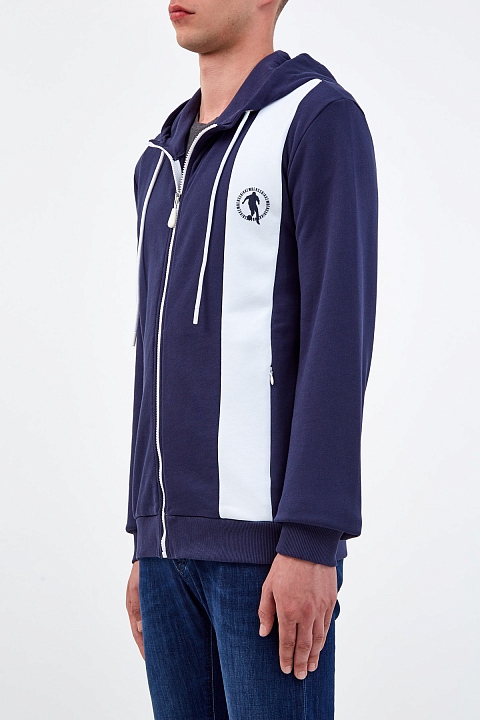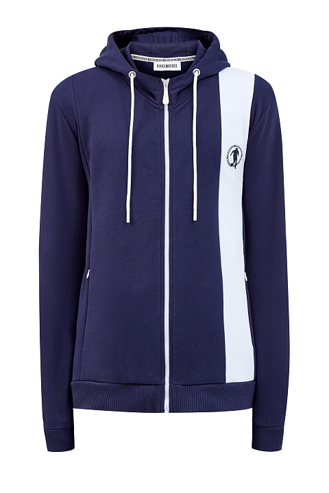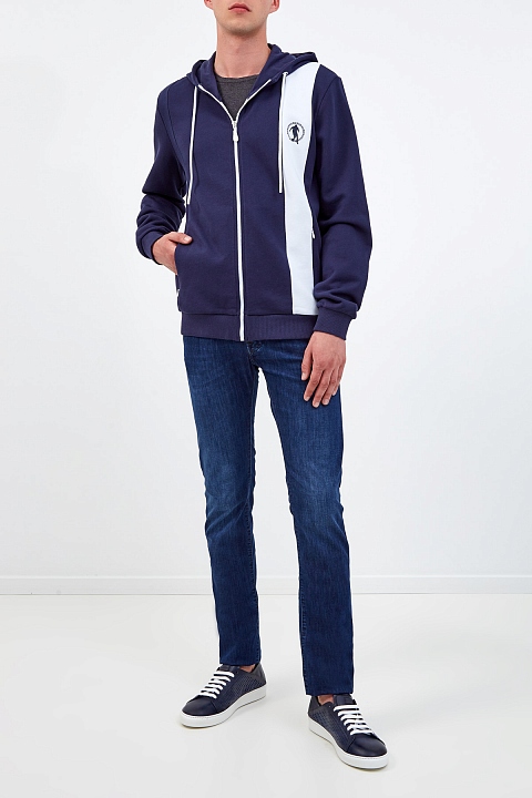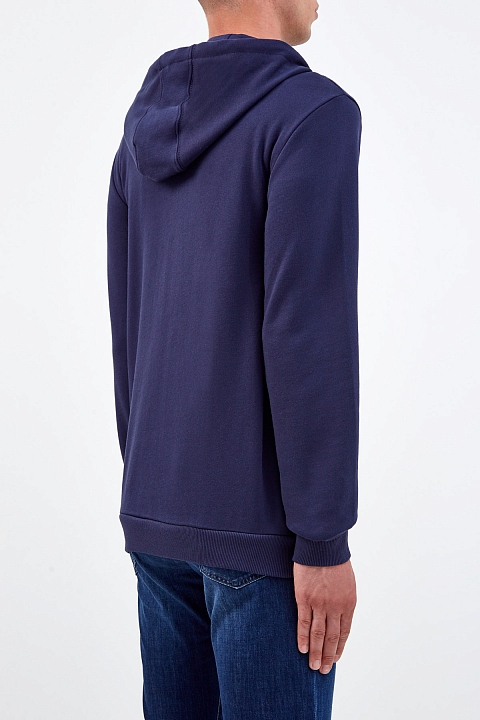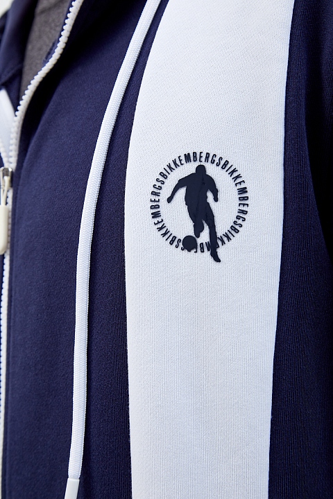 Спортивная мужская толстовка от Bikkembergs выполнена из плотного хлопкового футера базового темно-синего цвета. Контрастная белая деталь с фирменным логотипом Soccer подчеркивает динамичность образа. Объемная аппликация «1998» на спинке с годом основания уникальной линии BIKKEMBERGS в Италии посвящена истокам бренда. Детали: глубокий капюшон на кулиске, прорезные карманы на потайных молниях по бокам, эластичная отделка рукавов и нижнего края.