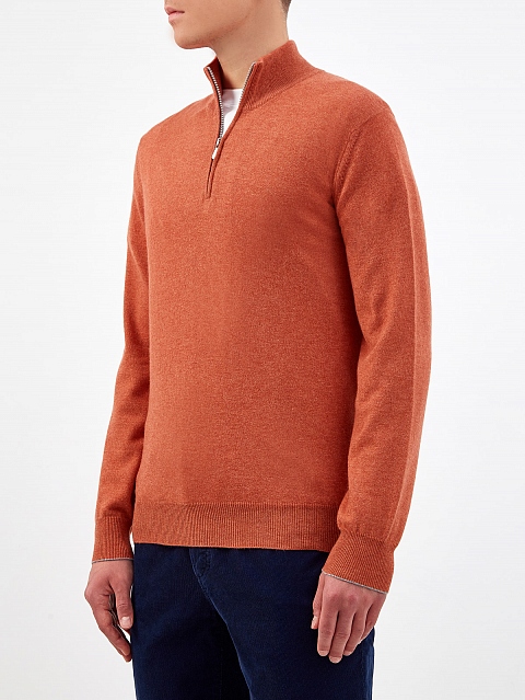 Утонченная пряжа из чистого кашемира, знаковая для коллекций Brunello Cucinelli, облагораживает стиль джемпера с высоким воротником. Детали контрастного цвета на молнии и манжетах придают изделию изысканную ноту. Модель характеризуется стандартным кроем и силуэтом, облегающим фигуру.