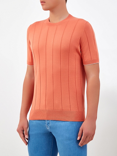 Джемпер с короткими рукавами из хлопковой пряжи в полоску
