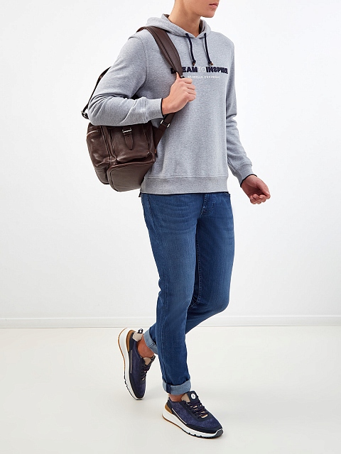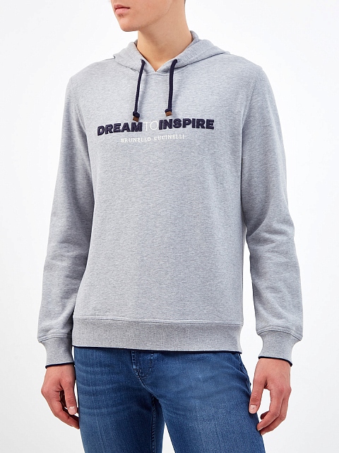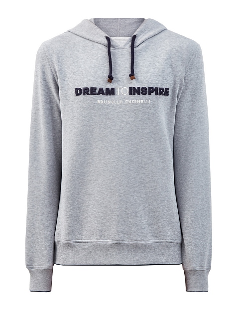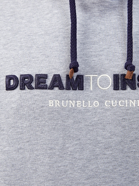 Высокое качество материалов Brunello Cucinelli придает дополнительные достоинства линейке Travelwear, предназначенной для отдыха и свободного времени. Футер из чистого хлопка обеспечивает комфорт и придает неформальный характер этой классической толстовке. Вышитая фраза «Dream to inspire» — это позитивное послание, вызванное напомнить о важности веры в мечты, постоянный источник вдохновения. Сделано в Италии.
