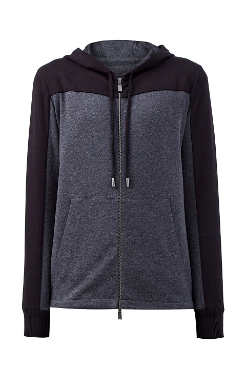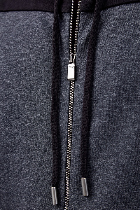 Спортивная мужская толстовка от Canali выполнена из плотного хлопка интерлок — материала с фактурой джерси с обеих сторон. Дышащая и эластичная ткань делает модель идеальной для путешествий и активного отдыха. Дизайн в технике colorblock сочетает меланжевый серый и графитовый цвета. Кулиска на нижней кромке формирует объемный силуэт. Детали: манжеты в рубчик, застежка-молния с брендированным пуллером, накладные карманы. Сделано в Италии.
