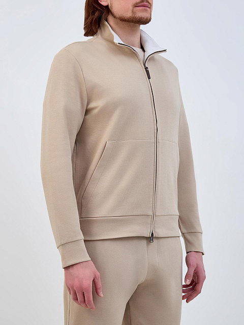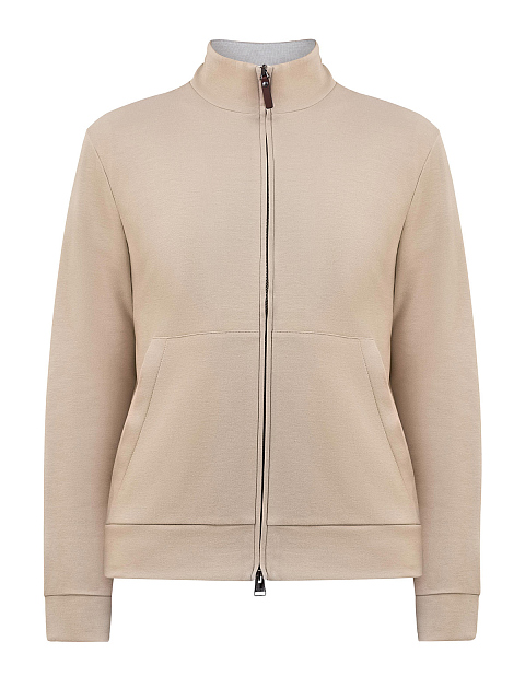 Толстовка из двухслойного хлопка с кожаным пуллером и вышивкой