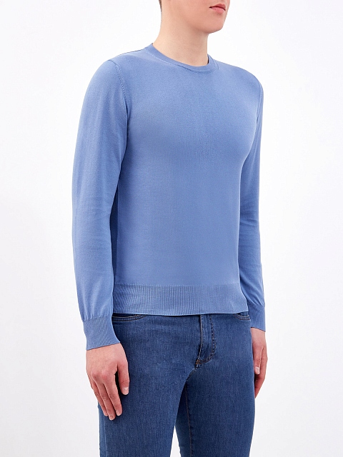 Базовый мужской джемпер от Canali. Для создания изделия была выбрана легкая хлопковая пряжа. Техника чулочной вязки обеспечивает эластичность и делает модель максимально комфортной, а однотонное исполнение и минималистичный дизайн позволяет интегрировать пуловер в повседневные и деловые образы. Детали: круглый вырез, длинные рукава, манжеты и нижний край в рубчик, расслабленный силуэт по фигуре. Сделано в Италии.