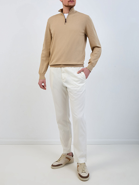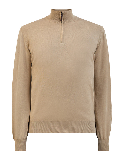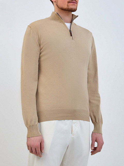 Хлопковый джемпер с застежкой на молнию и пуллером из кожи