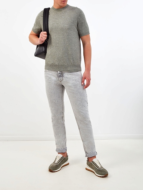 Лаконичный джемпер с короткими рукавами от Canali выполнен из мягкой хлопковой пряжи с добавлением волокон шелка, полностью натуральный состав обеспечивает максимальный комфорт в движении. Техника тонкой вязки в меланжево-оливковой гамме придает образу нотку неформального шика. Эластичные манжеты и нижний край обеспечивают точную посадку по фигуре. Сделано в Италии.